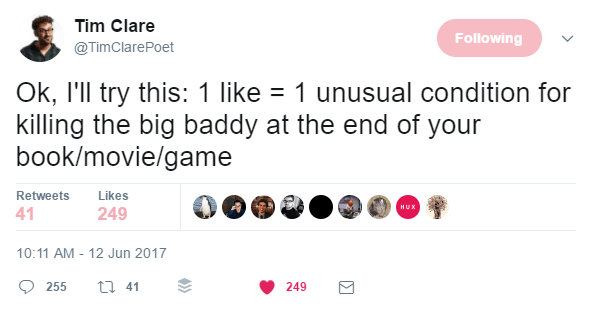 Time Clare, renowned performance poet, writing advice purveyor (the last episode of his podcast is extremely something) and author, laid down this challenge for himself on twitter this week: