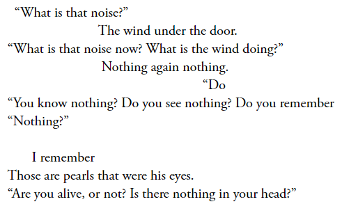 This is something we all do occasionally. We’ve all had our moments of wanting to do nothing, be nothing. And then we have those conversations with ourselves — those conversations seen in The Waste Land about nothing. After all, what is the point of us dreaming ourselves into nothingness?