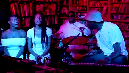 If none of that suits, I would suggest having a bash at this bit of the Tyler, The Creator NPR Tinydesk. I really enjoy the arrangement (particular the use of backing singers) and the way he conducts the band. Nice lights too.
