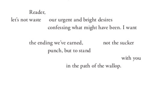 But in reality is a bold statement of wanting wholeness and truth in life. Through this collection of poetry that feels like it pulls a lot from memoir writing — that confessional, confiding tone that’s designed to pull you in like a close friend — we’re convinced the barn burner of the epigraph was quite reasonable.