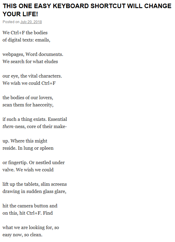 In other ctrl+f news, there happened to be this this week in Eunoia Review by Catherine Kyle: This One Easy Keyboard Shortcut Will Change Your Life
