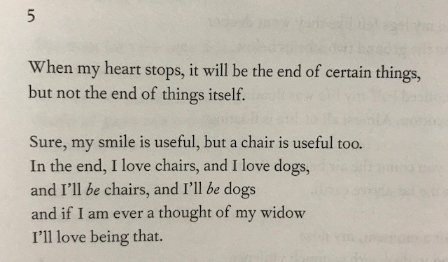 Endlessly shifting between the pain of existing in a body and a bright potential of living beyond as an idea. Forever there is a solid reality in the poetry which is then pushed against by the quick hard souls of the feet out into the lightness of space. It’s what you expect, dreaming of being ripples out there in the world beyond your own existence.