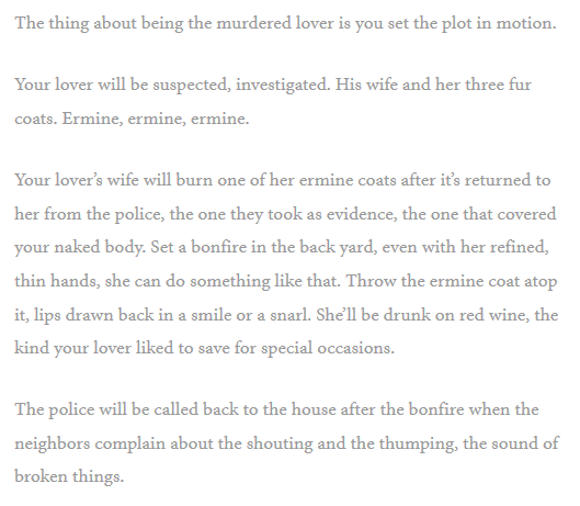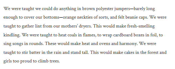 As you know, I started this partly to have a way to protect my brain from the rubbing sludge of everyday life that clogs moving parts and smooths sharp edges. It was also an exploration of discovering what I actually love in literature — it allows me the chance to be as fully aware of the stuff we’re surrounded by, and what I want to emulate and reflect in my own writing. Here’s a better articulation of that from Inside The Castle.